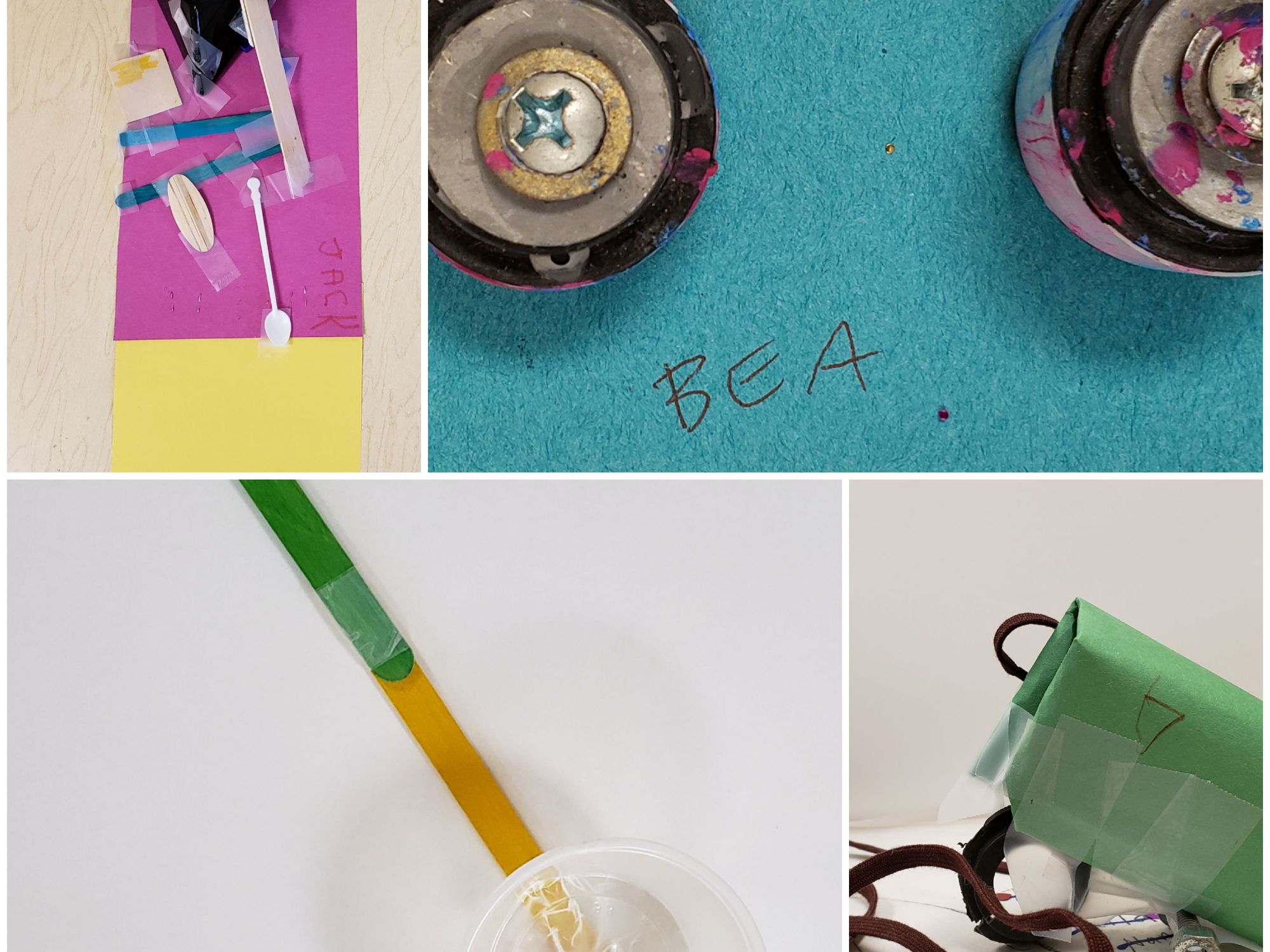 More inventions from the Discovery Class. Starting in the upperleft corner, going clockwise,